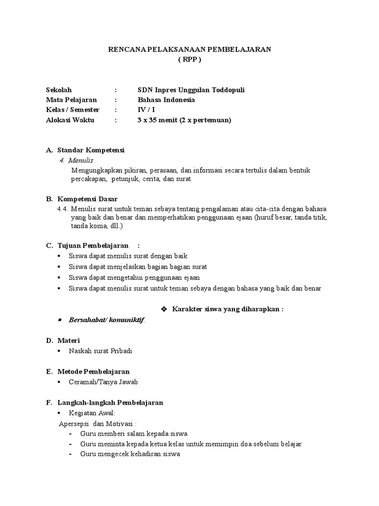 Rencana Pelaksanaan Pembelajaran Kls4 Mtk B Indo