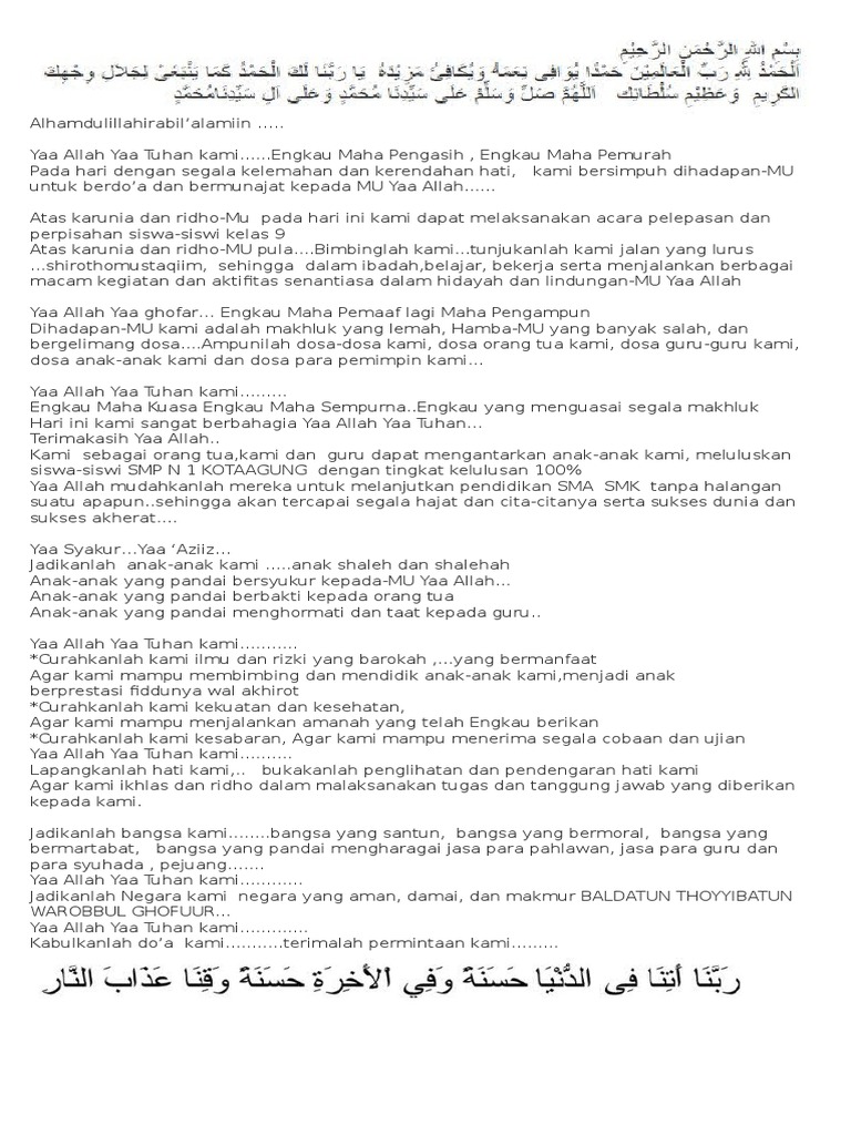 Doa Perpisahan Sekolah Paud Secara Islam Ruliretno Com