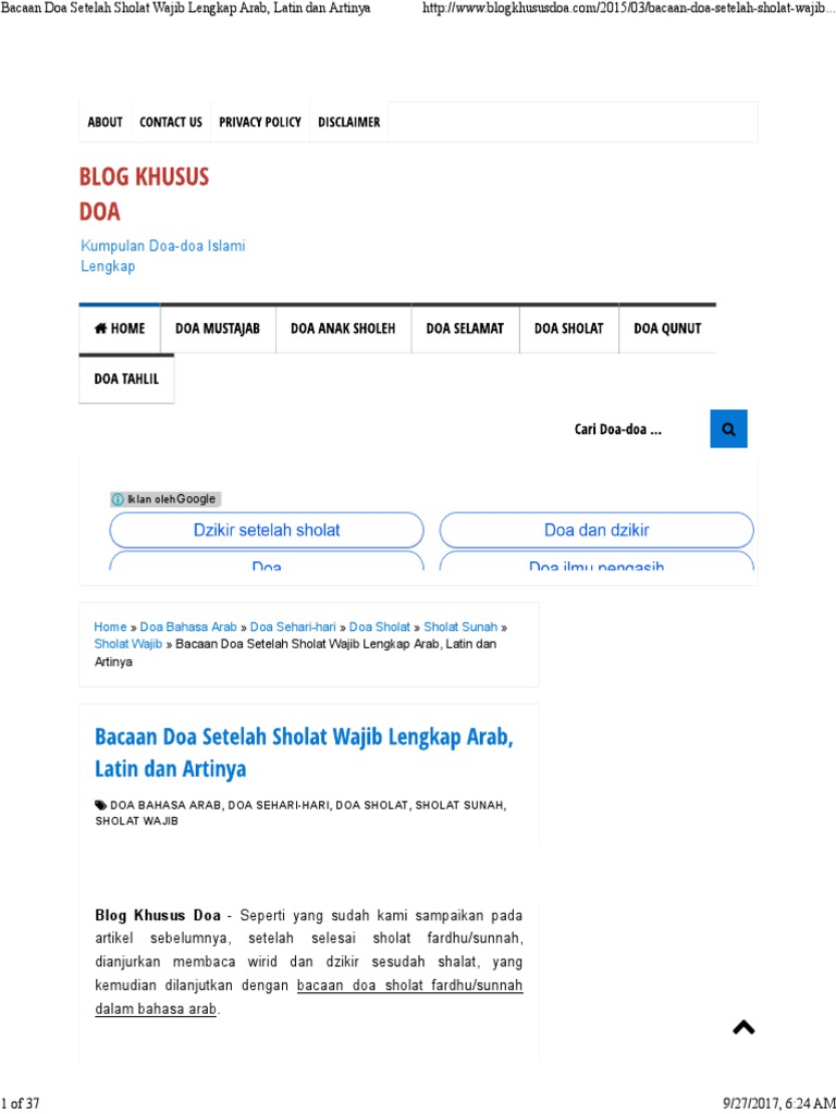 Dzikir Dan Doa Setelah Sholat Lengkap Tulisan Arab Latin