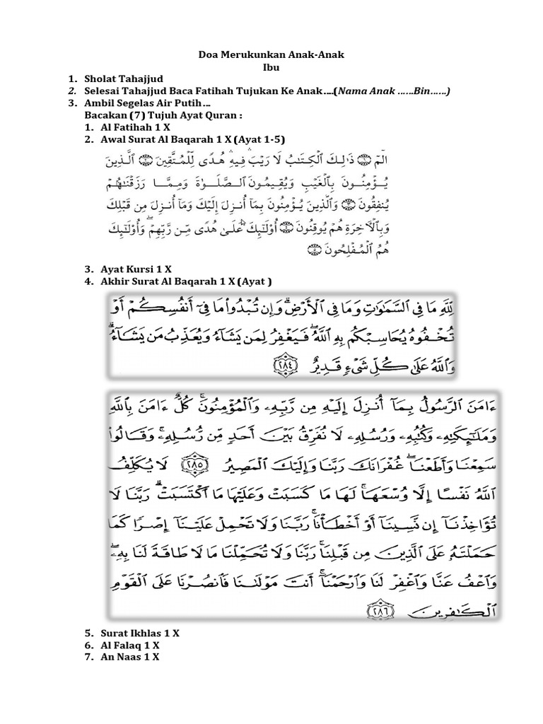 Doa 7x Al Fatihah 7x Ayat Kursi 7x Al Ikhlas 7x Al Falak 7x An Nas