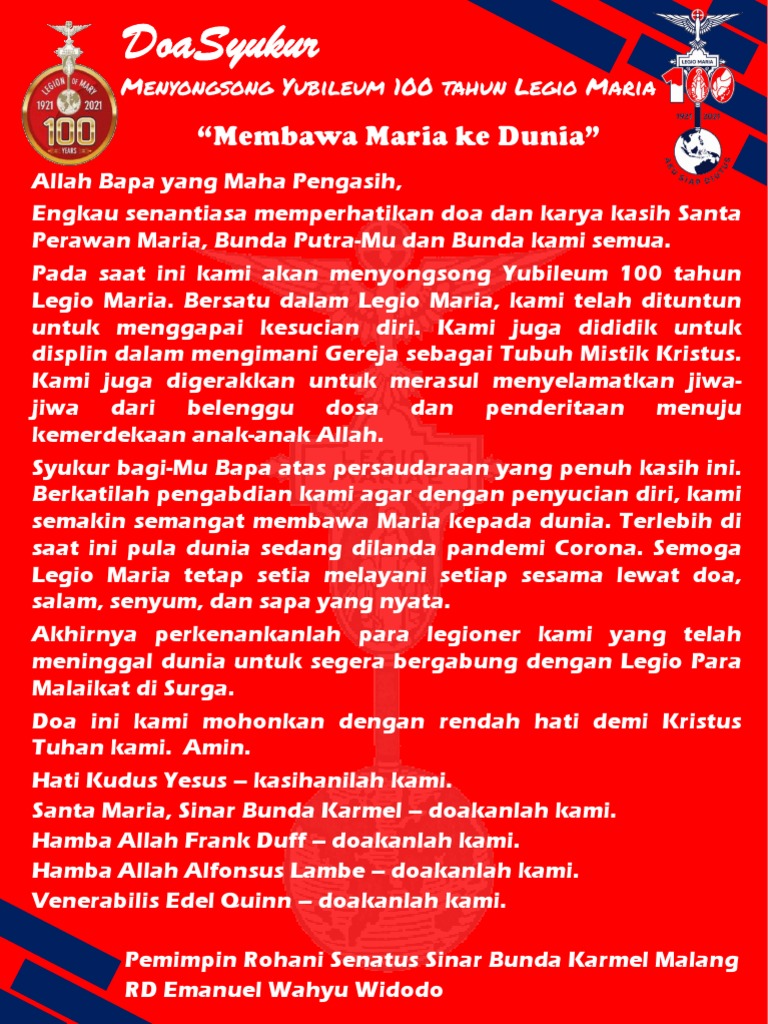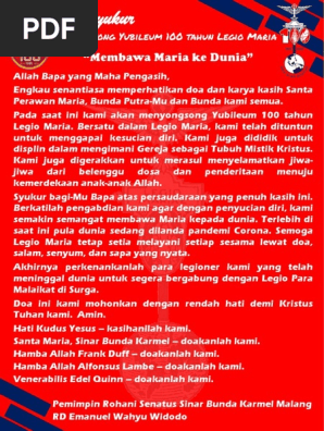 Doa Syukur 100 Tahun Legio Maria Senatus Sinar Bunda Karmel Malang Fix Pdf