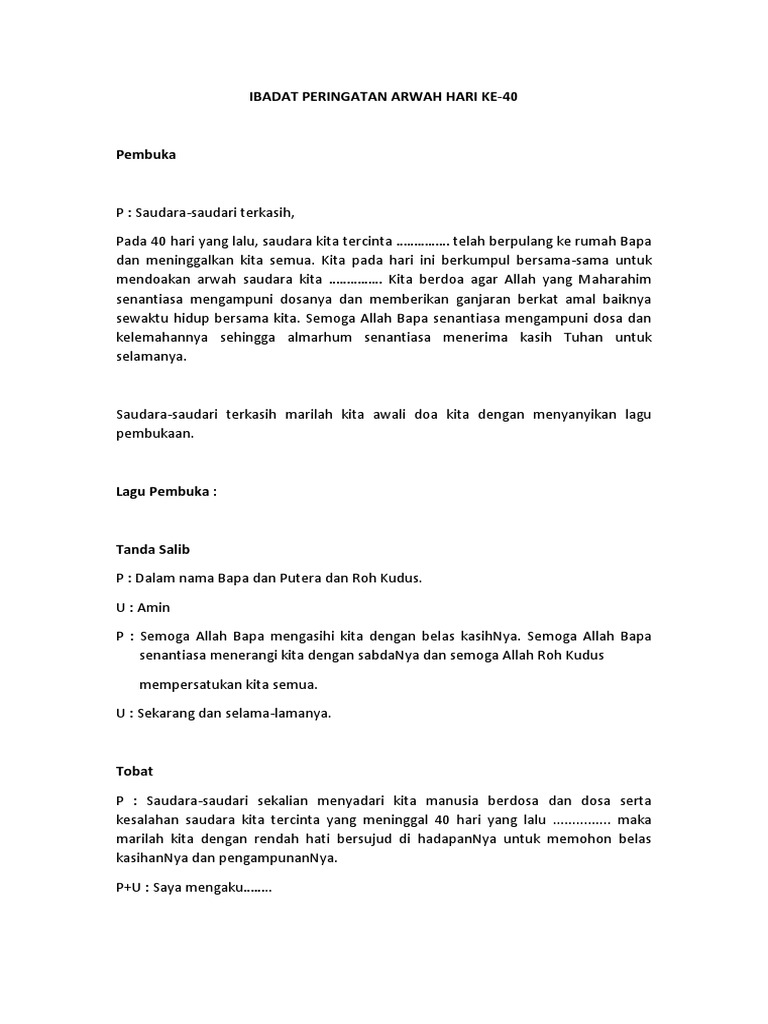 Ibadat Peringatan Arwah Hari Ke 40 Pdf